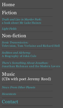 | Latest News: My translations of poems by Albert Mérat will be featured in issues 5, 6 and 7 of Ragged Lion Journal. A short story of mine called 'Night Nine' was published by Unthank Books in 'Unthology No.3' | ||
